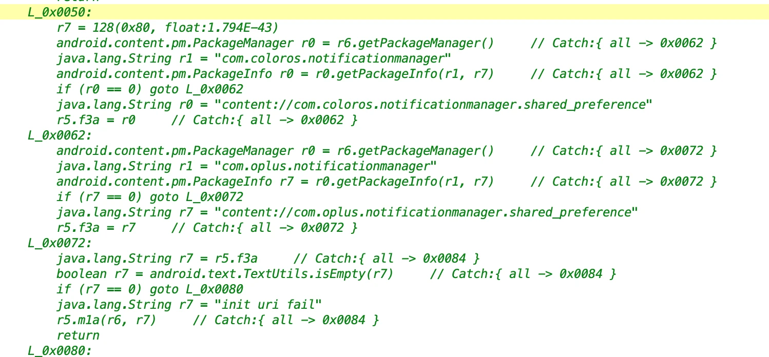没有反编译出来,看大概的逻辑应该是打开 App 在 oppo 手机上的通知权限