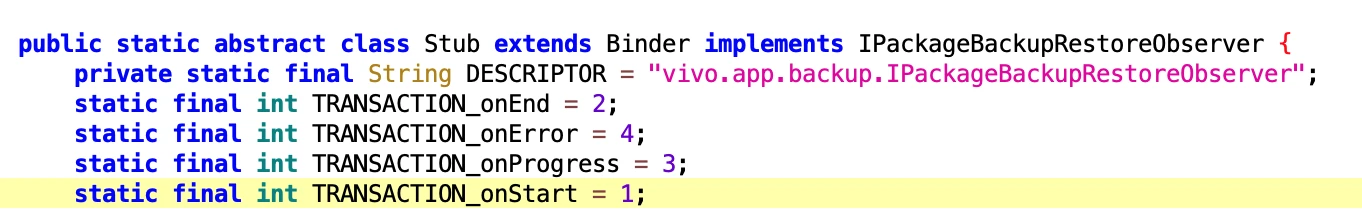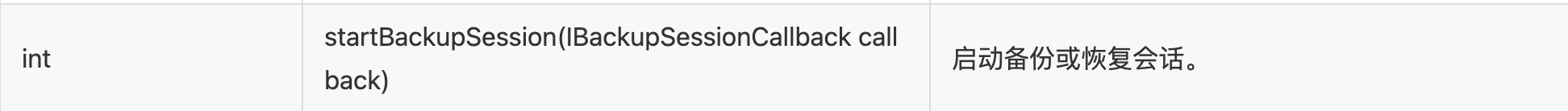 这个看了半天,应该是专门针对华为手机的,收到 IBackupSessionCallback 回调后,执行 PackageManagerEx.startBackupSession 方法