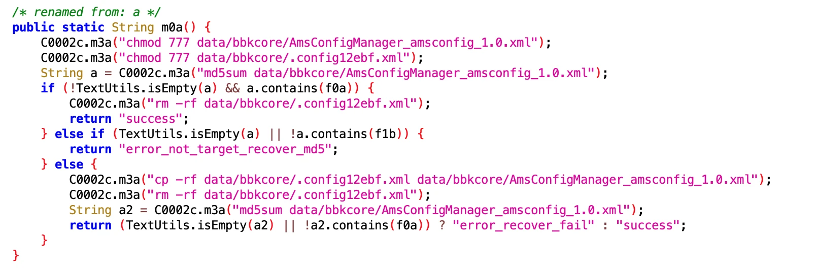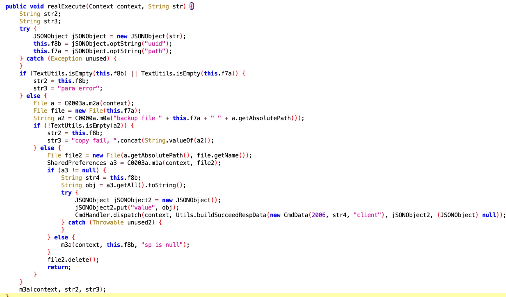 另外也可以看到,这个 App 对于各个手机厂商的研究还是比较深入的,针对华为、Oppo、Vivo、Xiaomi 等终端厂商都有专门的处理,这个也是值得手机厂商去反向研究和防御的。