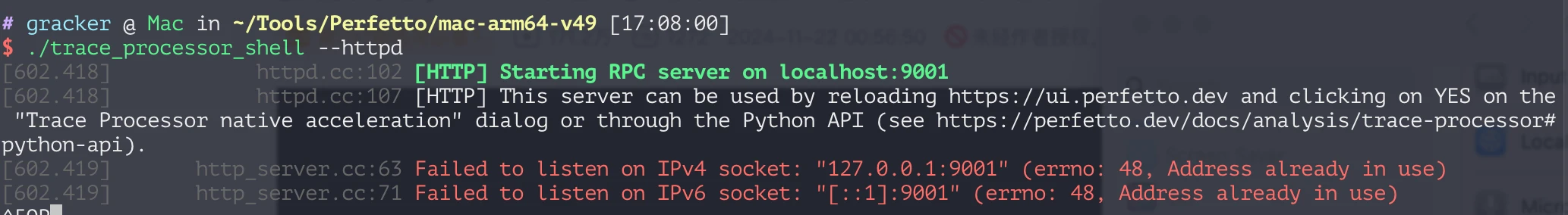Mac 上直接运行 ./trace_processor_shell –httpd 会报下面的错误