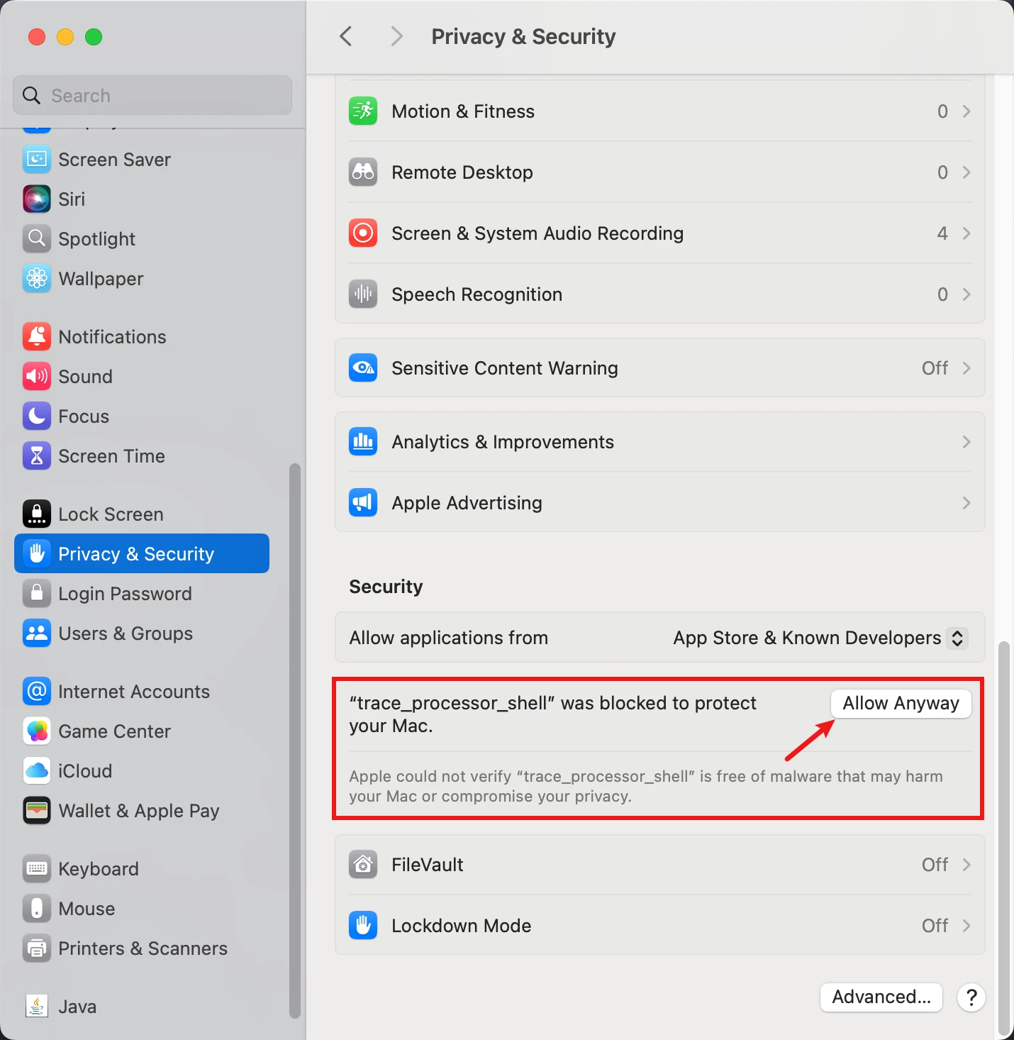 需要在设置-隐私与安全,点击 Allow 才可以继续运行
