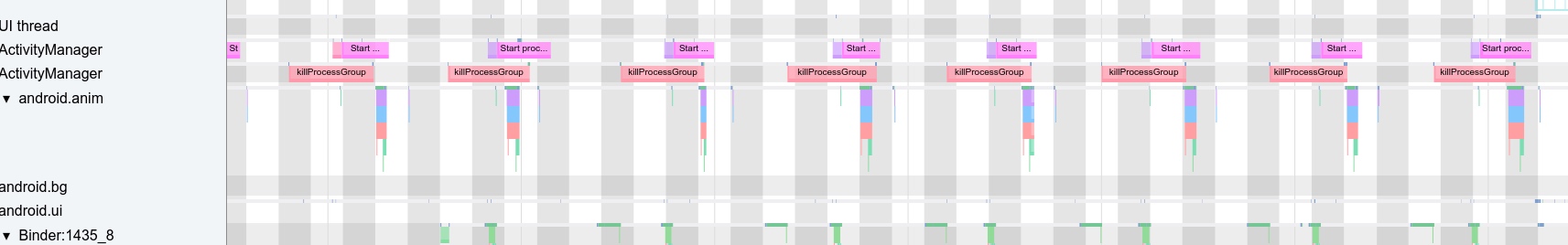 Below is a trace of an app’s cold start under low memory, from bindApplication to the first frame (total 2s).