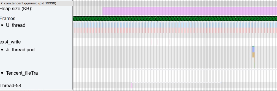 Opening QQ Music and then returning to the home screen yields similar results in Systrace and Method Trace.