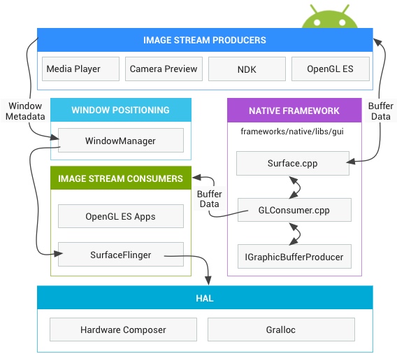 First, we must understand the high-level direction of graphics data. From app drawing to screen display, the process consists of several stages: